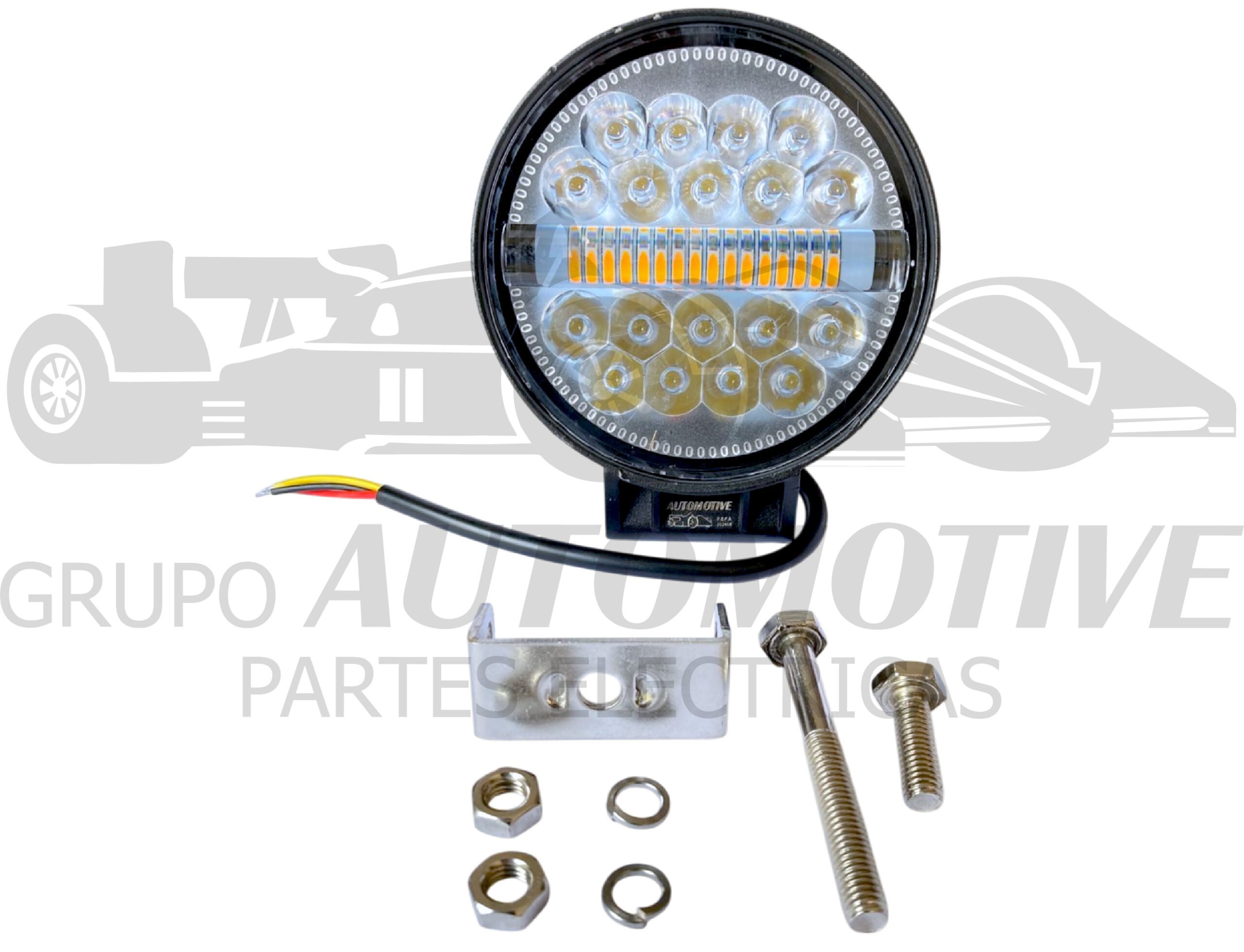 FARO DE LEDS AUXILIAR 4″ REDONDO 34 LEDS 34X1W CLARO / AMBAR ( FLASH). CARCASA NEGRA CON SOPORTE Y 3 CABLES.