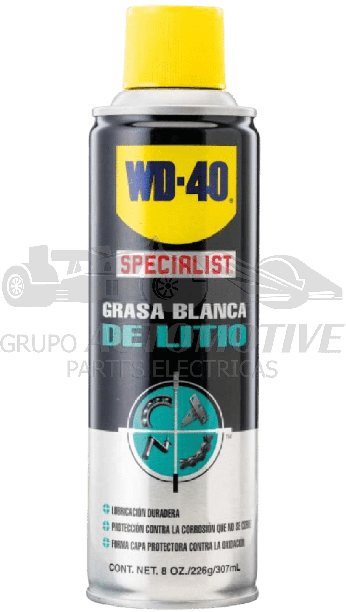 SPRAY WD-40 GRASA BLANCA DE LITIO SPECIALIST 8 OZ. ES IDEAL PARA APLICACIONES DE METAL A METAL QUE REQUIEREN LUBRICACIÓN DE SERVICIO PESADO Y DEJA UNA BARRERA INHIBIDORA DE ÓXIDO PARA PROTECCIÓN CONTRA LA CORROSIÓN. NO SE CONGELA NI SE DERRITE. EFECTIVO EN UN RANGO DE TEMPERATURA DE -45.5°C Y 260°C. APLICACIONES EN BISAGRAS AUTOMÁTICAS, ENGRANAJES, BISAGRAS PARA EXTERIORES, CIERRES, RIELES DE PUERTAS ELEVADAS, POLEAS, CABLES, CARRILES GUIA. 226G 197ML.