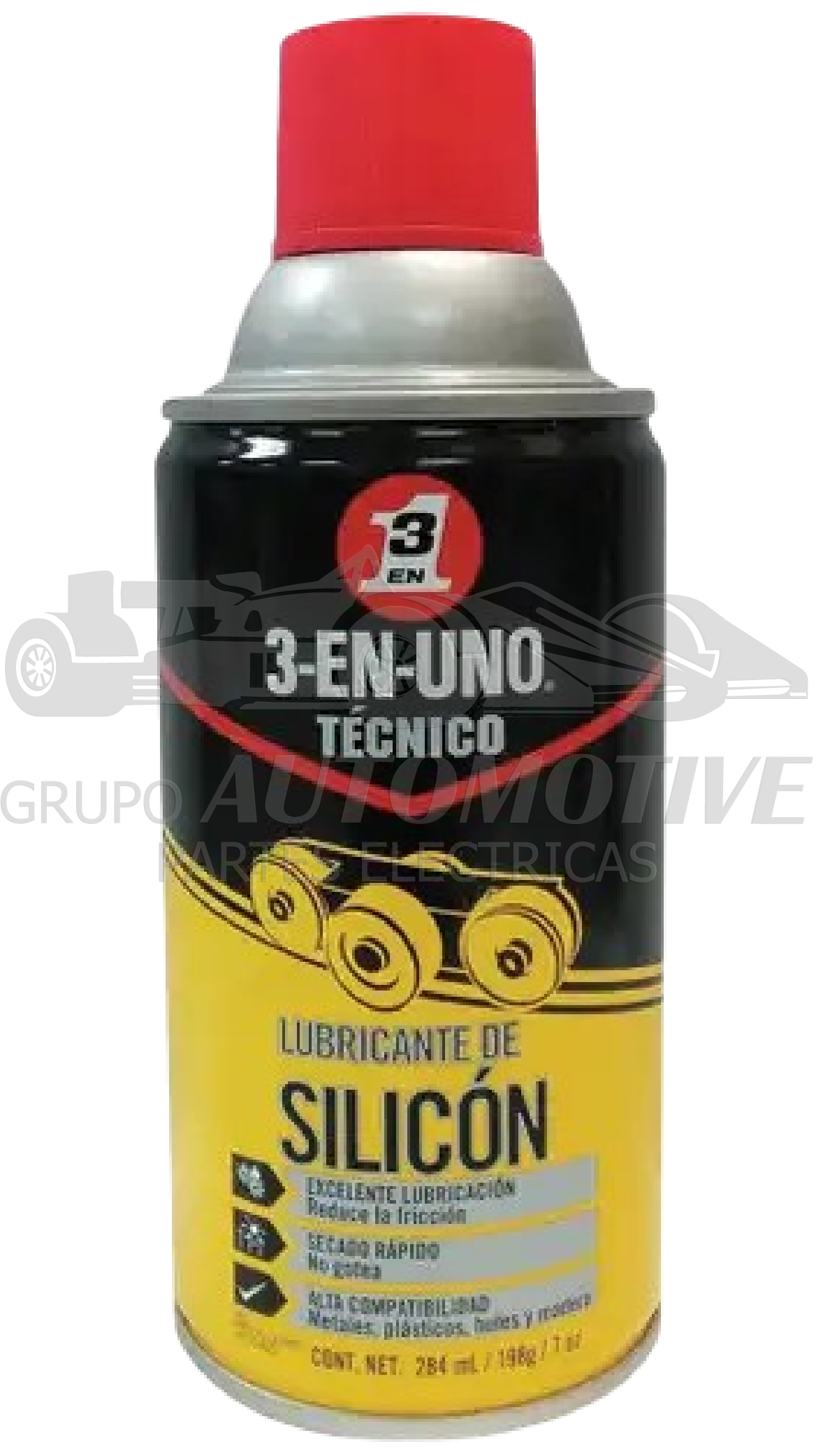 SPRAY 3 EN UNO LUBRICANTE DE SILICON. EXCELENTE LUBRICACION REDUCE LA FRICCION SECADO RAPIDO NO GOTEA ALTA COMPATIBILIDAD EN METALES PLASTICOS HULES Y MADERA SOPORTA HSATA +200°C. 284ml 198G HECHO EN USA